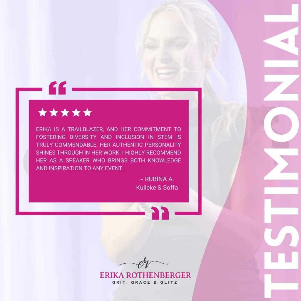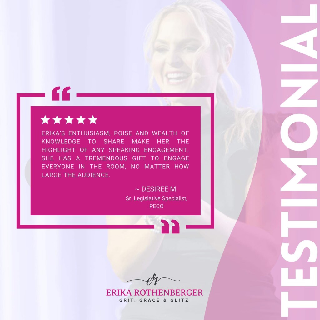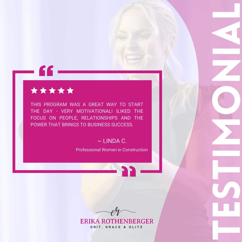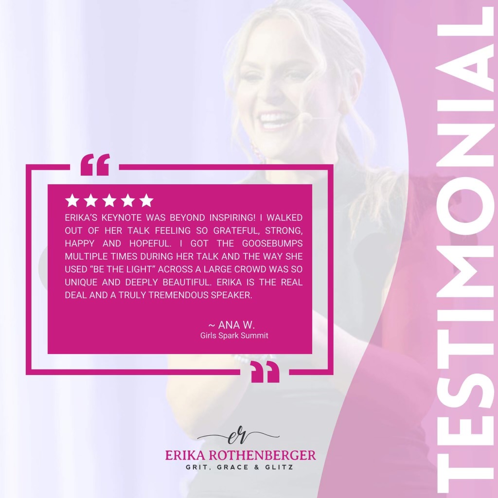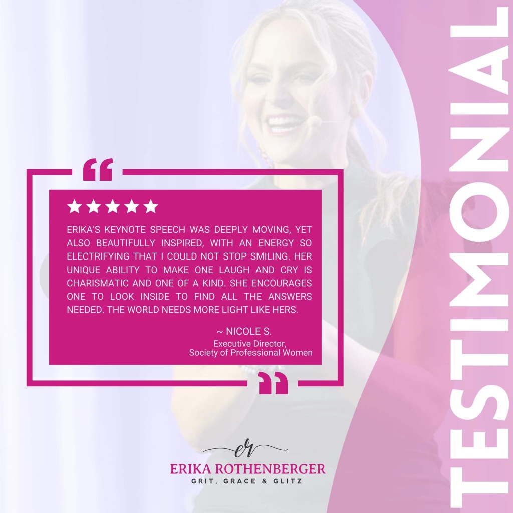 Welcome to our Testimonials page! Hear from those who have been inspired, empowered, and transformed by Erika Rothenberger’s dynamic talks and workshops. These testimonials highlight the impactful experiences of individuals who have embarked on their journey to personal and professional growth with Erika’s guidance. Discover how Erika’s insights and strategies have made a real difference in the lives of many, and see why she’s a sought-after speaker and mentor.